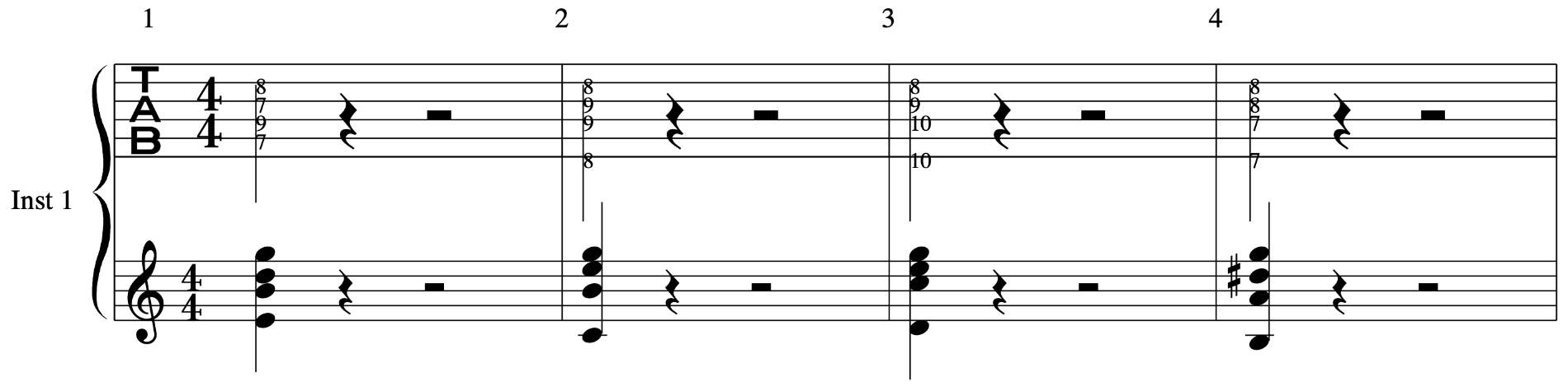 7. Första ackorden i varje ackordbyte klipps ut samt sista fjärdedelen före andra ackordet.