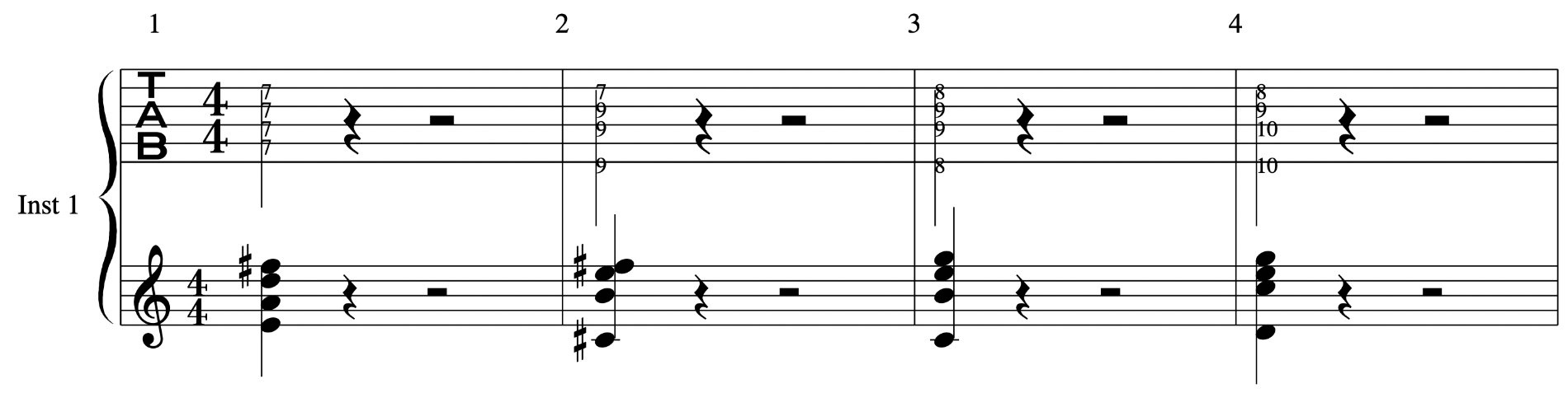 Typiskt är också att det ser värre ut än vad det är om man bara läser ut ackordnamnen. I Aerodynamic är ackorden Bbm7-Gm7b5-Gbmaj7 och Ab11, men vad det handlar om i praktiken är att de tre första är precis samma grepp med andra bastoner och i det sista, Ab11, är bara en ton i ackordet bytt.