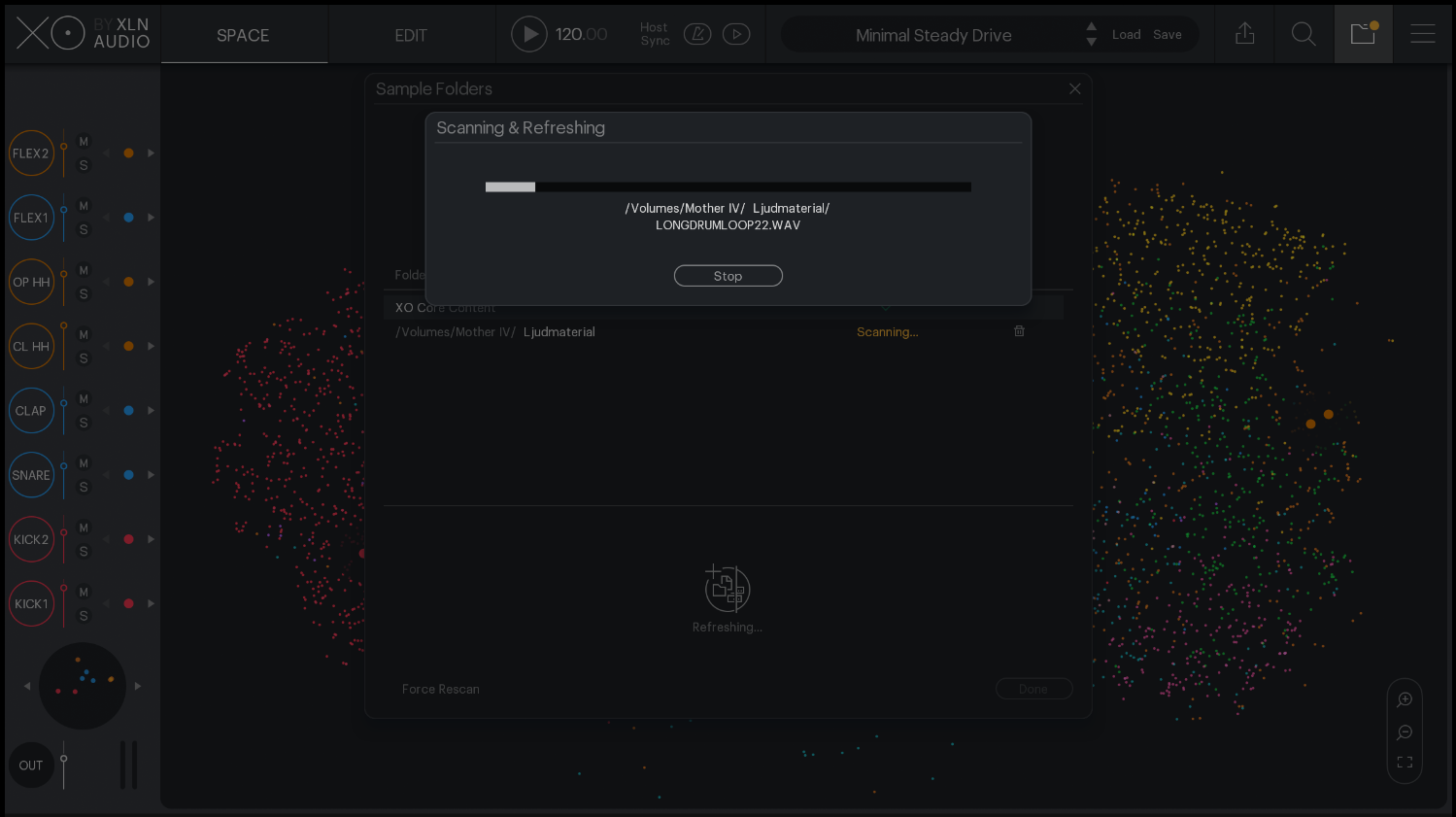 Leta upp en folder med samplingar på dina hårddiskar och låt sedan XO katalogisera ljudfilerna.