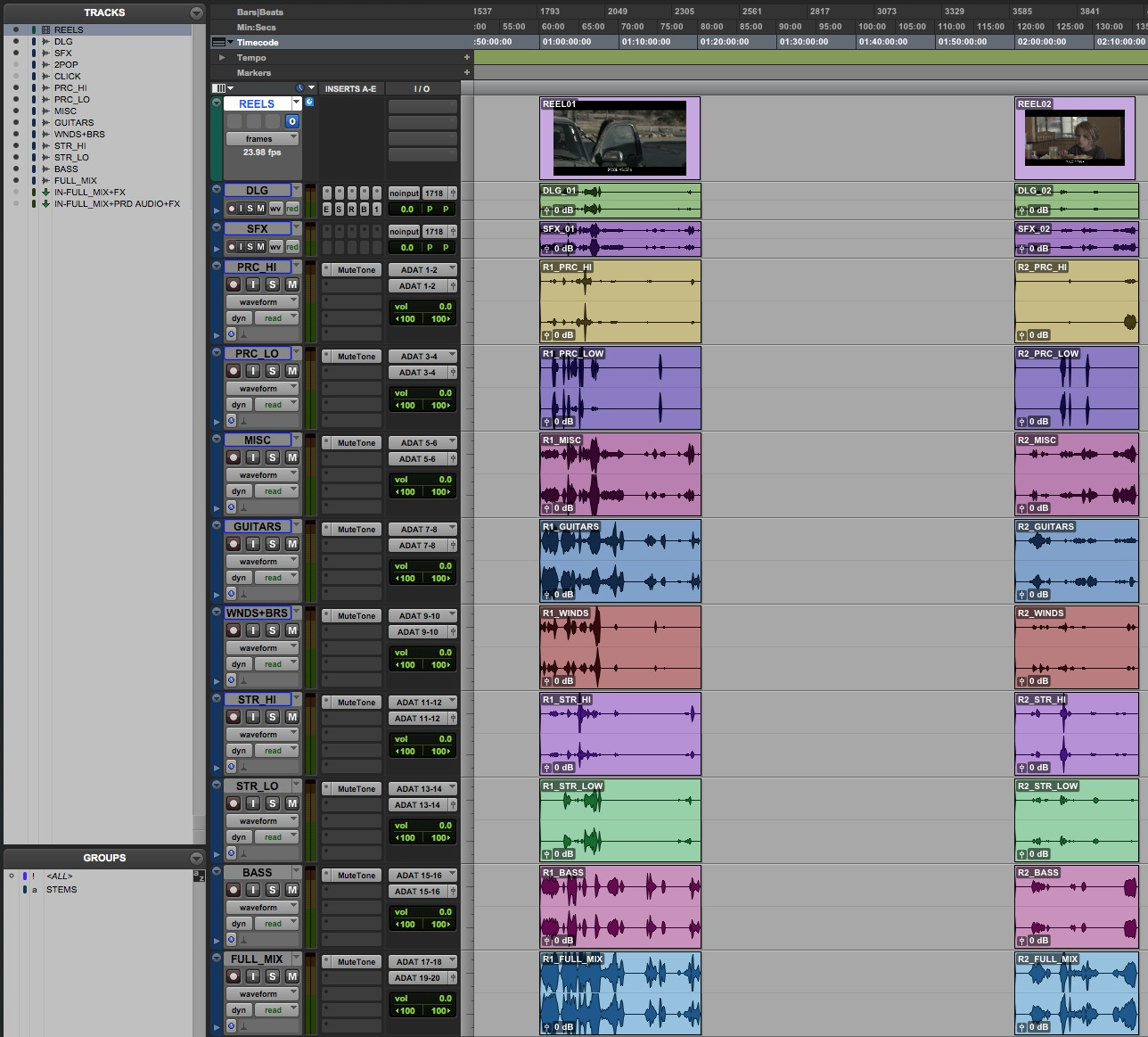 Det är mest vanligt att man har ett program man skriver musiken i och det är oftast Logic, Digital Performer eller Cubase, och ett annat program som exempelvis Protools, som är en så kallad Stem-recorder där man spelar in stereomixar/stems av alla instrumentgrupper som exempelvis höga stråkar, låga stråkar, hög percussion, låg percussion, och så vidare. Det är dessa som levereras till filmens slutmix (eller dub), så att det går att manipulera balansen i musiken för att anpassa den bättre med ljudeffekter och dialog.