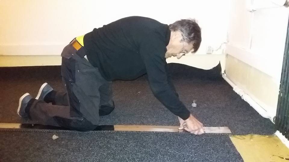 Guitar Nilsson Postat 11 oktober 2016 Trådstartare Postat 11 oktober 2016 Här lägger Gunnar Ohlsson in matta åt mig som han skänkte. 200 kr/kvadraten kostar den annars. Gunnar är trumkompis som jag spelat en del med, o även spelat in honom mfl i jazz-sammanhang. Han har haft mattfirma i ett långt liv o är verkligen proffs. Han är 83 bast o trummar, åker motorcykel, har har ca 8 stycken, vindsurfar mm. O kastar sig utan vidare ner så där o skär till jäkligt tjock matta. Att mattan dolde den snuskiga korkmattan från typ 50-talet eller äldre var ett lyft för utseendet. Akustiken känns mindre jobbig också. Allt blev skitroligt. Snart dags att ta dit ljudpryttlarna! 🙂