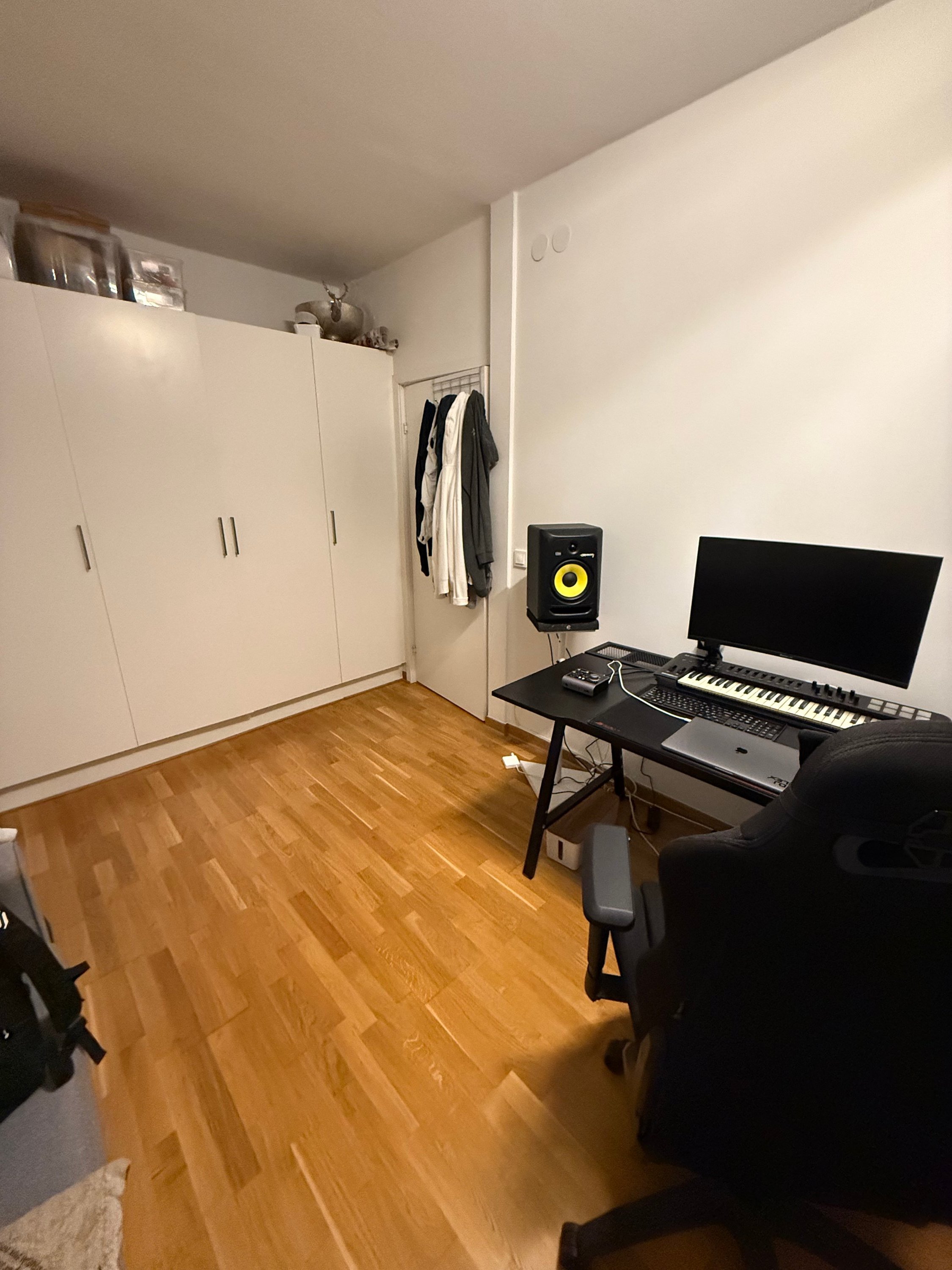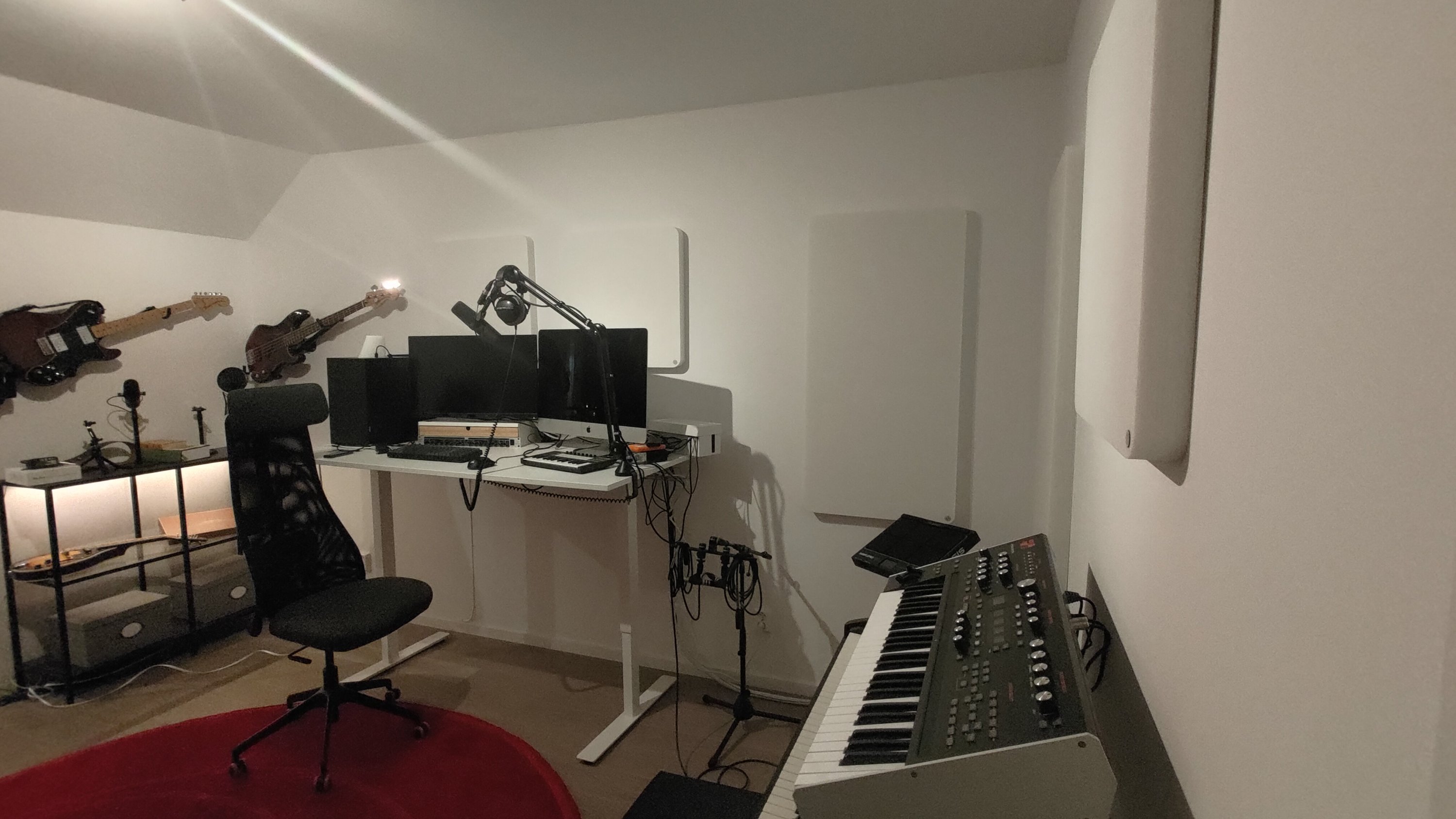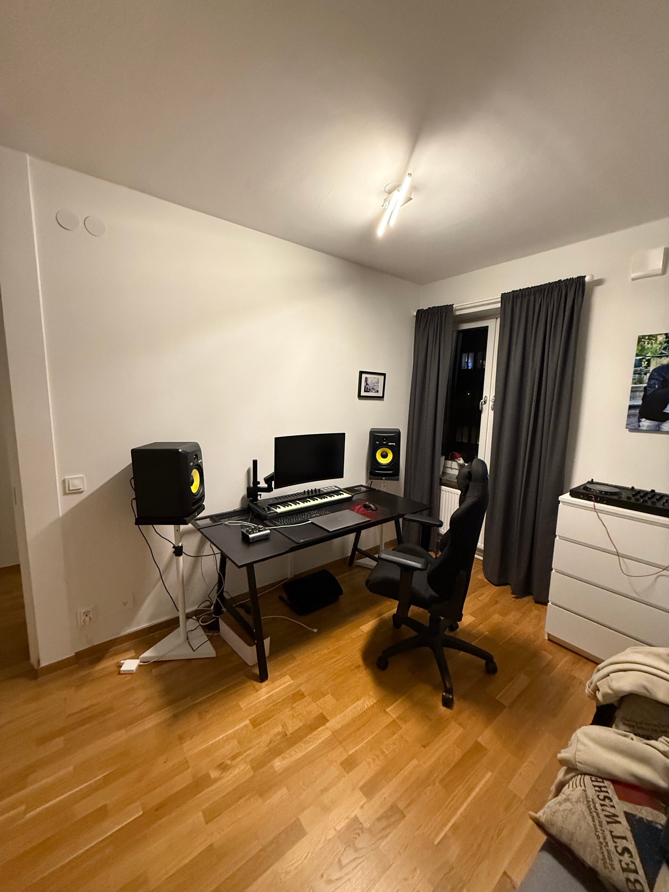 Jag har precis gjort om lite i vårat extra-rum och skulle behöva tips på hur jag ska göra ljudet bättre från monitorerna. Behöver jag inhandla skumplattor och fästa på väggarna? Jag tycker att ljudet studsar lite hur som helst när jag sätter igång en låt. Klappar jag i rummet så är det mycket eko. Har fattat det som att sätter man sånna skumplattor på väggarna så blir det bättre, eller är jag ute och cyklar? Isåfall vart ska jag sätta dom? Om ni kollar bilderna så har jag garderober/skåp till vänster och fönster till höger. Borde jag sätta något på väggen bakom skärmen?