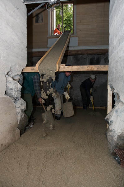 Tacoindian Postat 8 februari 2011 Trådstartare Postat 8 februari 2011 Gjutardags! Betongen tippades från bil rätt ned i hålet. Gick hur smidigt som helst. Avrivning av betongen. Dörrhålet leder ut i befintlig källare. Det vara en historia i sig eftersom stenmuren var 1,5m tjock och vissa stenar var rejält stora.