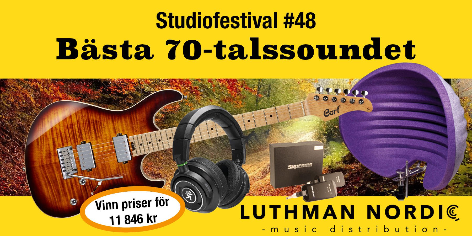 Äntligen drar höstens Studiofestival igång, och denna gång har vi fina priser sponsrade från Luthman Nordic. Temat är Bästa 70-talssoundet, och du väljer själv genre! Du väljer helt själv vilken genre och vilka instrument/pluggar du använder. Missa inte senaste fredagstipset ”Så rattar du fram 70-talssoundet” där du kan få både vägledning och inspiration. Tävlingen har fyra vinnare med riktigt fina priser (klicka för att läsa mer): Aston Halo. Värde 2 399 kr Mackie MC 350. Värde 2 199 kr Cort G290 Fat. Värde 6 249 kr Supreme Reach-01. Värde 999 kr Totalt värde: 11 846 kr Observera att vinnaren står för eventuell vinstskatt. Regler Välj fritt musikstil. Instrumentalt eller med sång Inga krav på att det ska vara en hel låt, viktigast är att få fram soundet Det måste vara eget material och inte en cover Spela in, ratta, mixa och routa efter bästa förmåga för att få fram ditt bästa resultat – alla typer av effekter och signalkedjor är tillåtna När du är klar skickar du ditt bidrag som en mp3- eller mp4-fil i ett personligt meddelande till @Björn Olsberg Röstning sätter igång i en egen tråd när bidragen är inskickade Förutom äran så blir det fyra personer som kan vinna dessa fina musikprylar. 1:a-pristagaren får börja med att välja en produkt, 2:a-pristagaren får välja bland resterande, och vidare tills priserna är slut Du behöver inte föranmäla ditt intresse här i tråden Start: Nu direkt, den 2 oktober 2020 Slut: 2 november 2020, kl 23.59 Stort tack till Luthman som bidrar med dessa fina vinster! Läs mer:5 poäng