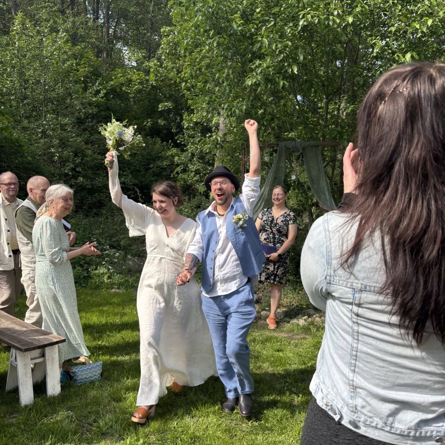 Jag sjöng inte men jag spelade gitarr och två av mina vänner sjöng. Med den ena vännen spelade vi: - Blackbird - Hallelujah - While My Guitar Gently Weeps (denna var en överraskning för min fru, det är hennes favoritlåt och vi hade övat in den i smyg) - Never Gonna Give You Up :D Med den andra vännen spelade vi: - Trasiga Skor - You Oughta Know - Monodream (från mitt gamla band Arcane Reality) - Bara Bada Bastu :D Och sen så sjöng min systerdotter en Aurora-låt. :)3 poäng