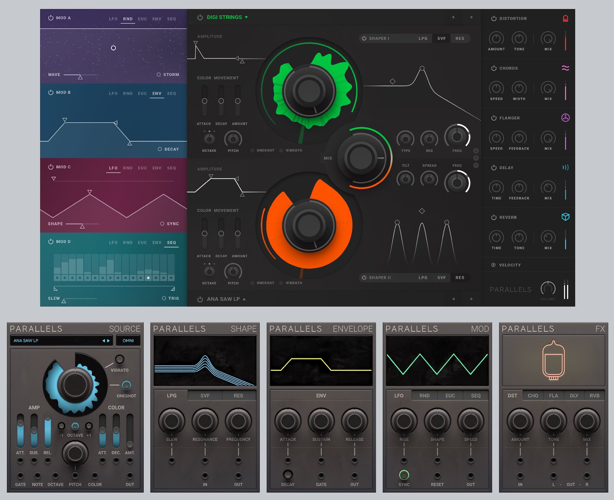 - NEW: Parallels for Modular—Source, Shape, Mod, Env, and FX modules, to create unique sounds for unique ideas
