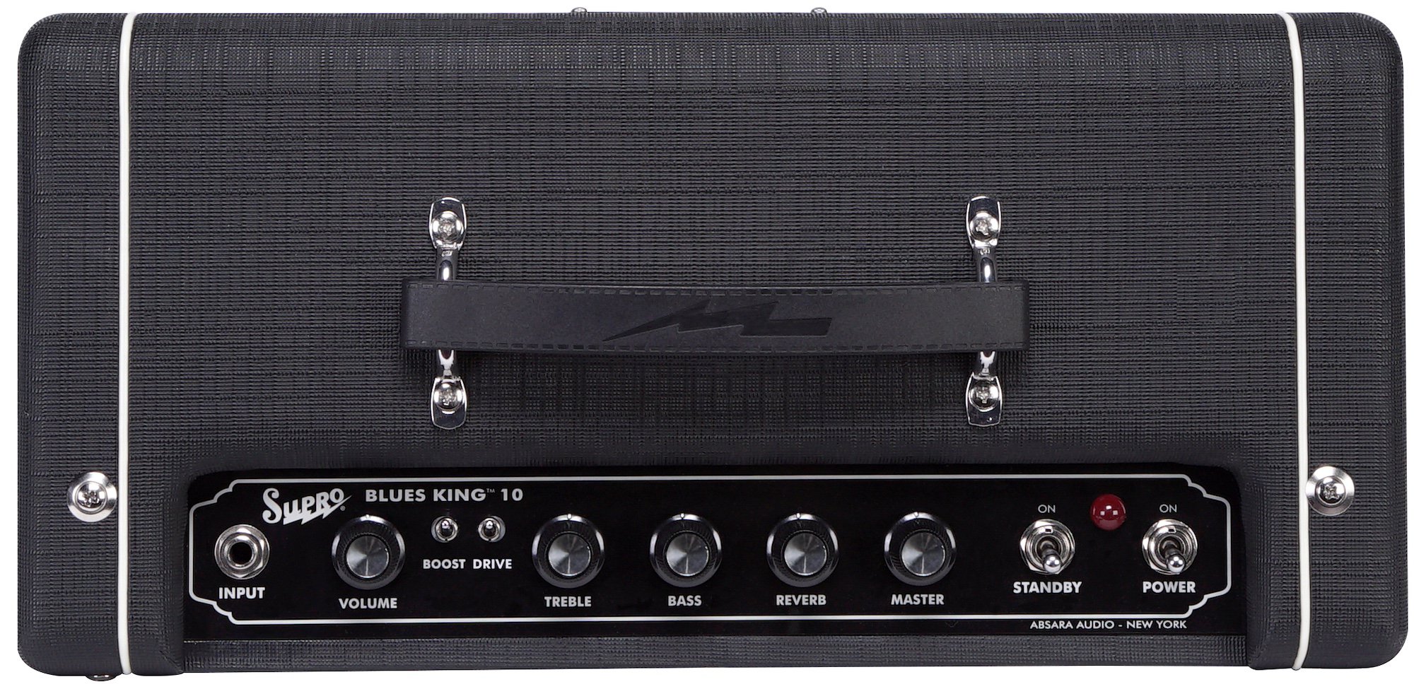 March 9th, 2020 – (Port Jefferson, NY) – Building on the success of the 12" and 8" Blues King tube amps, Supro rolls out a new, 5-Watt, 10" model, with on-board spring reverb, switchable FET boost and Fat Drive circuits. The Blues King 10 delivers the authentic 6V6-powered tube-amp tone of the Chicago-made Supro combos from the 1950s. The Class-A power amp found in the Blues King 10 provides all the natural compression and touch-sensitive headroom that have made these vintage “single-ended” combos a go-to solution for studio recording since the early days of Rock and Roll.