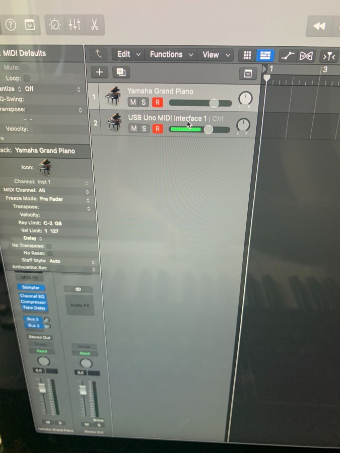Hej. Midi input på softwareinstrument har slutat funka. Om jag skapar en external midi kanal så registrerar Logic inputen från min midi controller. 🤔 (se bild) Men inte på software instrumentet Vad har jag missat? Tack på förhand. (Har startat om datorn) iMac 11.2.3 - Logic Pro 10.6.1 - USB Uno midi interface- cme uf6 midi controller.