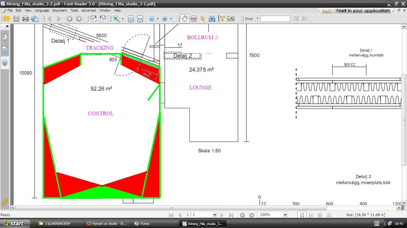 Då får du kolla att du får en bra ratio på rummet. Eventuellt blir det att bygga sidoväggarna inåt rummet. Det är ganska litet för ett kontrollrum så du kommer att få problem med modes. Jag skulle valt ett av de större rummen = mindre huvudvärk och bättre ljud.