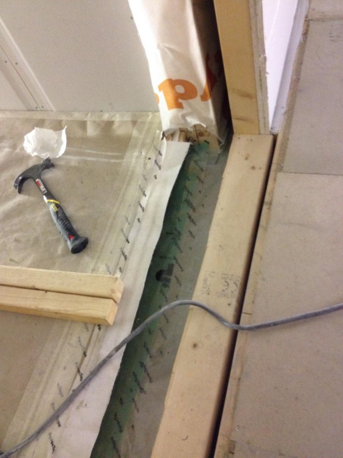 Tjena! Nu går det segt mot slutet. Fått en del gjort och släpar mig trögt och söligt mot mål. Attans vad träligt det är det sista, men lite framåt går det allt! Det fanns ingen sparktröskel där dörren kommer monteras in, hittade lite spillbitar jag kunde få ihop till samma höjd, med gummi under givetvis hehe... 🙂 och till slut på med lite CemInWood på eländet... När det var dags att städa fick jag hjälp från min lilla byggjobbare... 🙂
