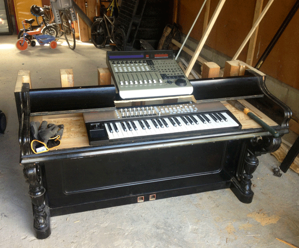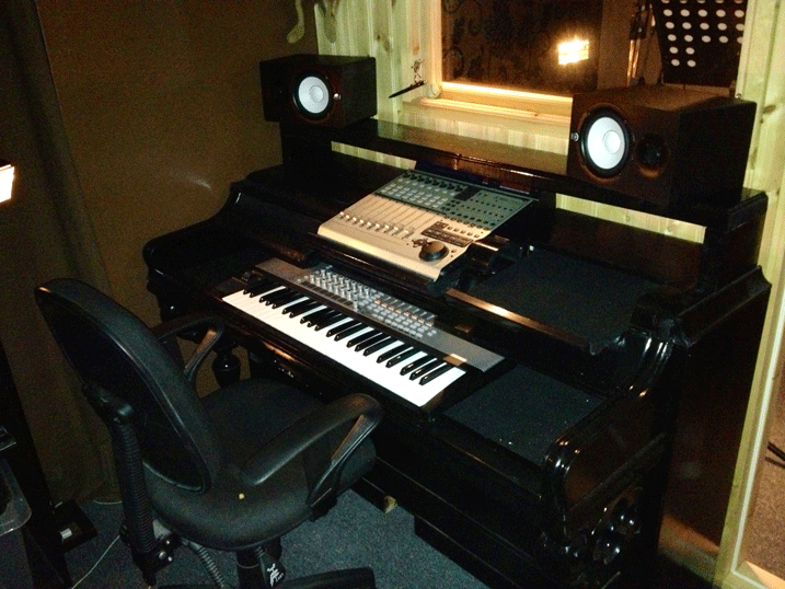 Hej! Tänkte slänga upp lite bilder på mitt projekt att bygga om ett gammalt piano, som var bortom räddning, till en schyst studiomöbel. Har hållt på att pyssla med detta i några månader nu och kommit en bra bit på vägen. [ attachment=14987:bild-1.gif] Här har jag just börjat. Bara tagit bort några kåpor. Tangenterna bortplockade och så har jag påbörjat det spännande jobbet att knipsa av strängar. Försiktigt knipsade jag var tionde sträng från höger till vänster för att bibehålla ett jämnt tryck på harpan. Samtliga strängar knipsade och ytterligare strippat pianot. Tog hjälp av grannen och la ner åbäket så jag skulle kunna lossa på och ta bort den massivt tunga harpan. Det var ett aber utan like att få bort alla gamla skruvar och bultar som höll den på plats. Ordentlig size på skruvarna. All skit borta, bara trä kvar och kapat bort över delen. Måttat in och kollar hur det tar sig lite. Fått dit ett hyllplan där monitorer och skärm ska stå samt börjat pussla in bitarna på plats. Fixat till och lackat. Börjar bli riktigt snyggt nu, Nu står det på plats nere i studion och väntar på lite final touch och sedan koppla in. Monitorn ska stå mellan monitorerna. Till höger om Mackien ska Macbooken stå och till vänster tänkte jag ha en Ipad som tredje monitor som även går att ta med i sångbåset när jag lägger sång själv. Jag ska posta en bild på det färdiga resultatet så fort det är klart.