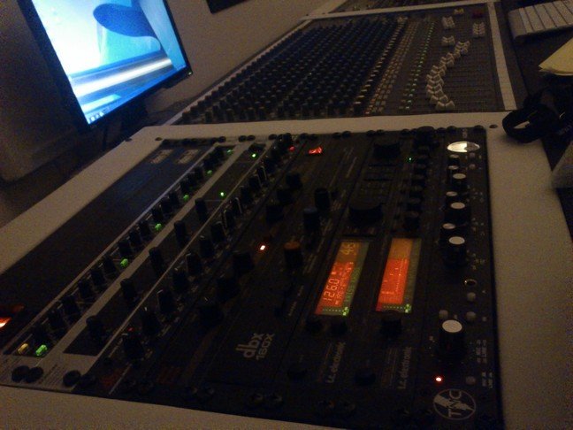 Sådär, in med min customdesignade skittunga mixermöbel av MDF och fejkat läder. Jag hittade inga bra ben att ställa det på. Tänkte köra med billiga Ikeabordsben, men det såg för jävligt ut. Tillslut åkte jag och handlade lite Lecablock och staplade på varandra. Stabilt! De två hålen i det svarta "lädret" i mixermöbeln är mugghållare tillräckligt stora för att husera vinflaskor. Ett tag lekte jag med tanken på att kunna sätta in vinboxpåsar för att kunna tappa rödvin direkt från mixermöbeln, men det får duga såhär. Kopplat in alla kablar. It's ON! Jävligt overkill egentligen. Hade jag varit en smidig och sansad person, hade jag kört allt i datorn. Men jag vill mixa "på riktigt". Jag vill ha mycket outboard. Jag vill ha alla orenheter det medför. Strömbrytare/fördelare i rack från Adam Hall. Allt det nödvändigaste i möbeln, inkl syntarna, är kopplade till den översta, de flesta effekterna till den nedre. Strips till patchbayarna. Ett väl genomtänkt kopplingsschema rekommenderas starkt! Strips pålimmade. Två via wordclock synkade Echo Audiofirekort ger 24 in/ut till dotan. Custom rackmöbel i fejkat koskinn till höger om mixposition vid fönstret. En patchbay som bl a sammanlänkar enheterna med resten av studion. Här finns även CV/Gate in och ut m h a Basstation, samt hörlursförstärkare 8 kanaler. Klart att spela in...om bara inspelningsrummet var klart också! Fan! Nåja, mer om det imorgon. Kan tillägga att ljudet är riktigt bra i rummet. Otroligt klart och detaljerat. Lite genomslag i några frekvenser i övre basregistret, vad jag kan höra, men inget jag inte kan leva med. Faktum är att jag aldrig hört bättre ljud, förutom i professionella studior. Möjligtvis med undantag av Cborgs studio, men jag kommer inte ihåg hur bra det lät där pga vin. En annan fin grej med dämpningen och högtalarväggen, är att nästan inget hörs på ovanvåningen i huset om man har dörren stängd (branddörr), och man måste verkligen gå nära fönstret på utsidan för att över huvud taget höra att det är musik där innanför, även vid höga volymer.