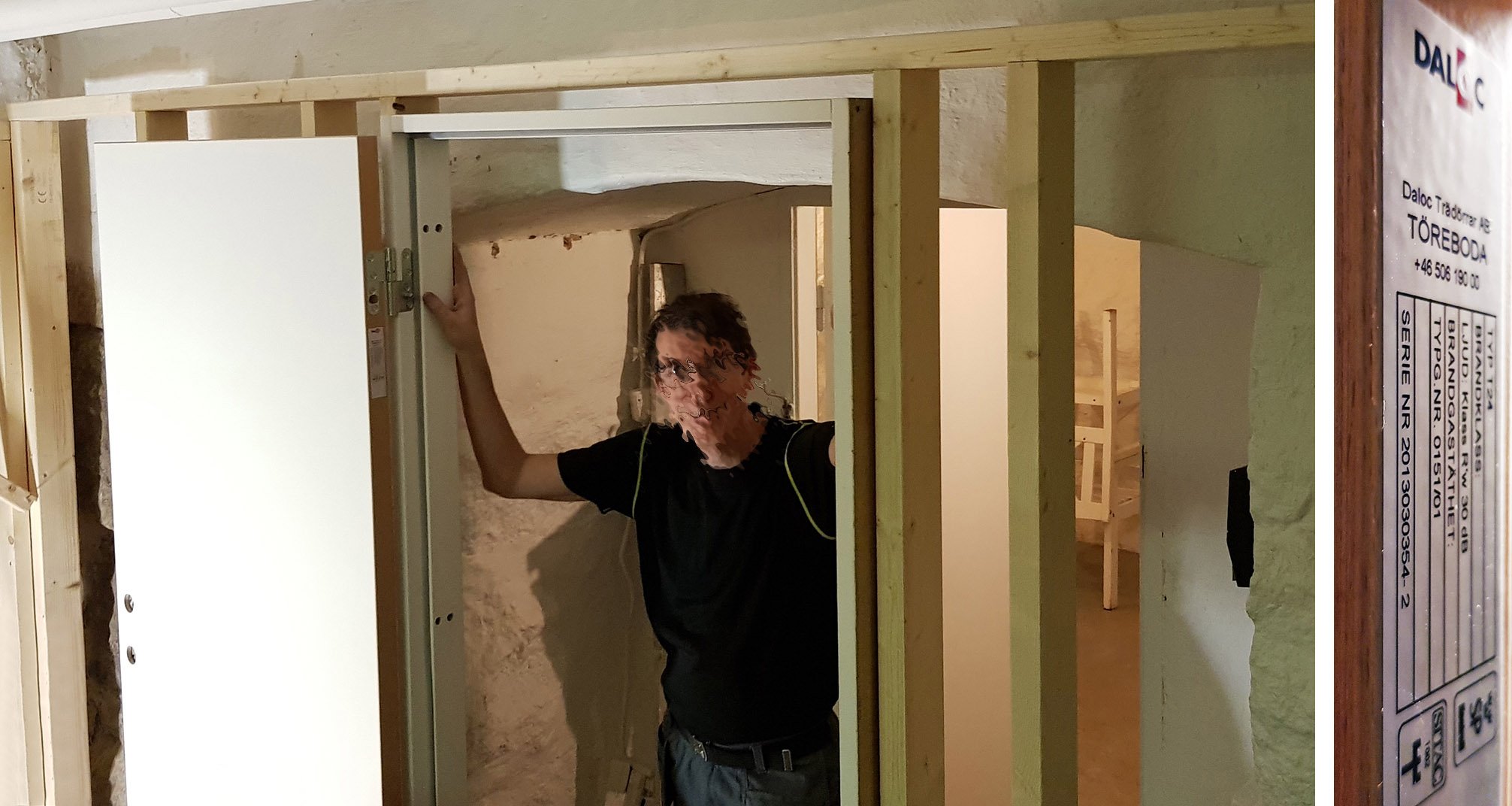 Något jag fick hjälp av min äldste bror var att montera och rikta in Daloc dörren jag köpt.. som tack får han vara pixlad här. Förmodligen skulle jag klara detta själv nästa gång nu då jag vet hur det går till. Detta fick sätta punkt för arbetet med stommen som nu kunde anses vara helt komplett.