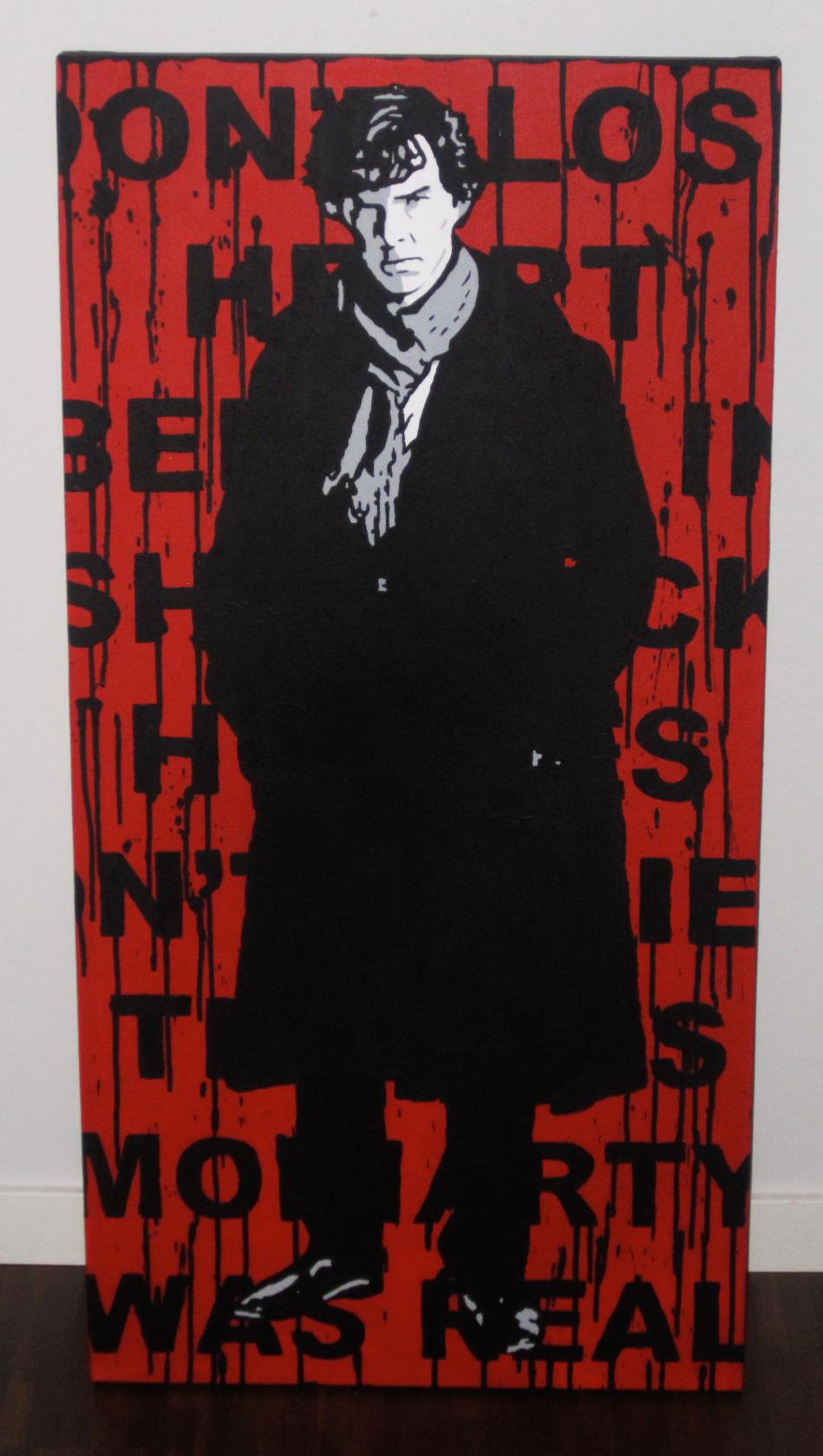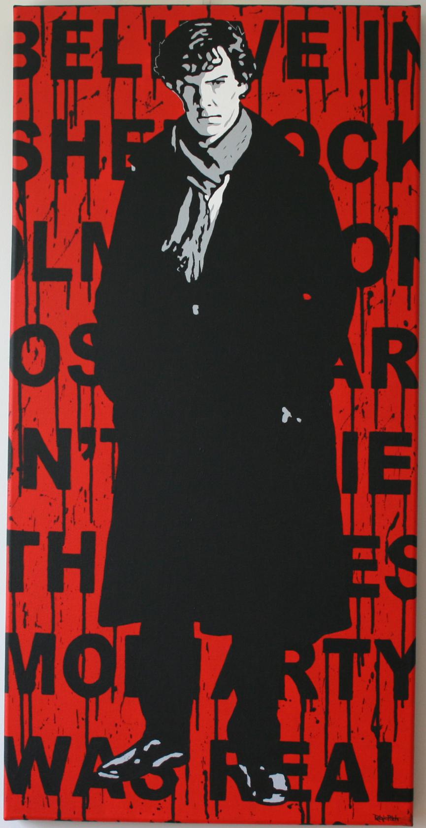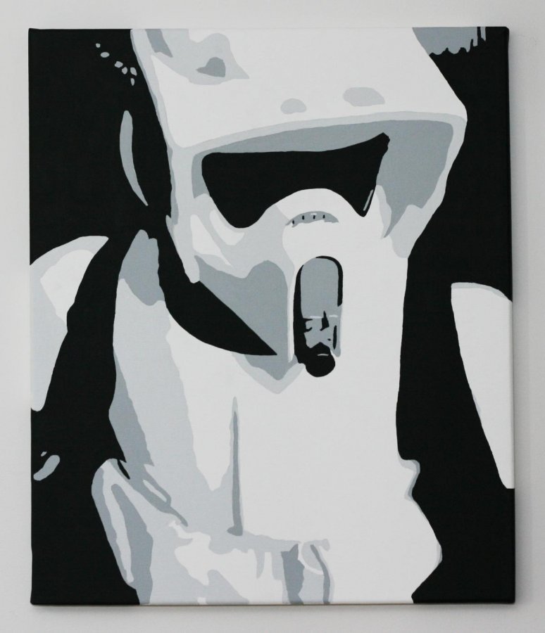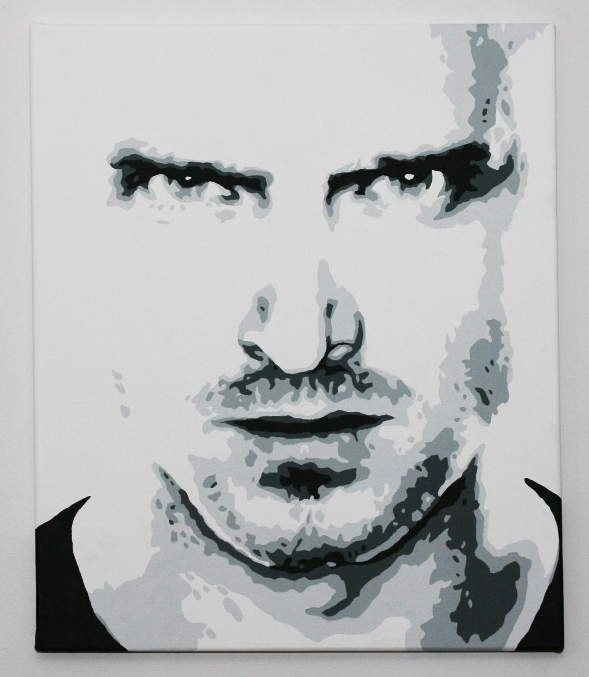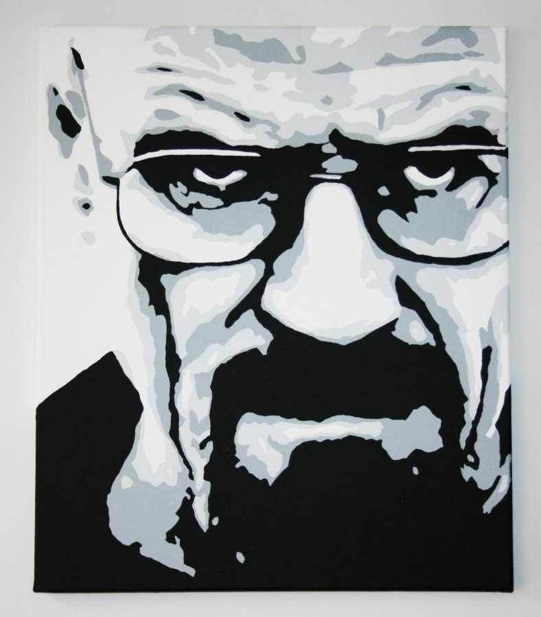 Tavlorna är målade med akrylfärg och baseras på stencil art (vanligt inom graffiti.. se: banksy, blek le rat mfl)