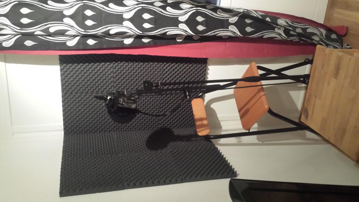 Jag lyckades lösa så jag kunde nolla latencyn nu är åtminstone timingen bättre så tack för det ! Grejen är ju den att jag är såpass okunnig i detta så jag förstår inte ens vad du menar när du säger högpassa basfrekvenser. Jag har kollat på youtube videos så mycket jag hunnit och orkat efter jobbet om dagarna men det känns som jag bara gräver mig djupare i saker jag inte förstår. Hur ska jag lära mig allting från början? Hursomhelst är rummet jag spelar in i 4x3 m stort, det är ganska lyhört, jag har som sagt ljudabsorbenter, 12st bakom mig i ett hörn när jag spelar in (Se bild) och 12st på väggen snett framför mig och det täcker upp ca 15% av den totala väggytan resten är naket. Är det endast detta som förstör för mig? Jag får för mig att min Mick är för dålig då den kostar runt 600-1000kr och finns inte ens i alla musikaffärer men det är alltså rummet jag spelar in i som sabbar min ljudbild? Jag bifogar en bild på hur det ser ut i hörnan där jag har micken. -