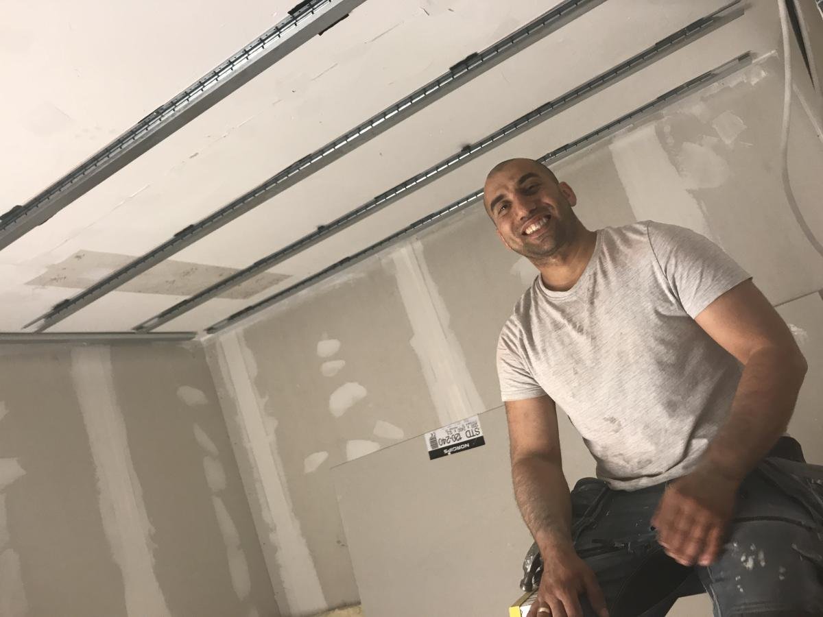 Nu har vi satt all gips. Blir spottar 30 spottar. Även byggt lutning i framkant. Imorgon börjar ventilationen. Vi kommer köra Studiomöbel från ett ställe som heter Buso Producer XXL i glossy piano lack finish. Måtten är exakta för konstruktionen.