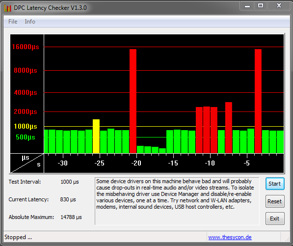 Har nu gjort detta också. Det blev ett annorlunda utslag med Latency Checker men problemet kvarstår som framgår av bilden, även om jag inte vet om förändringen är positiv eller negativ jämfört med hur det såg ut tidigare