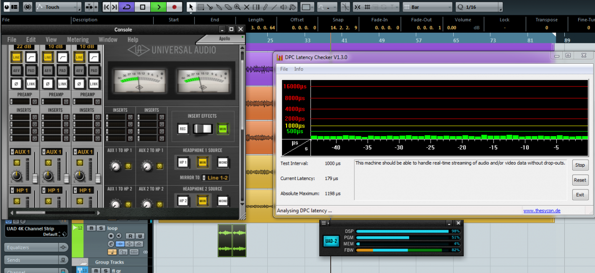 Fan. Jag trodde jag hade hittat nåt. Laddade ner drivrutiner till Sonnet firewire från deras hemsida trots att det enligt Enhetshanteraren hade de senaste drivrutinerna. Tyckte det blev bättre. Men de röda staplarna i Latency checker dök upp i alla fall, även om jag tyckte de var mindre till antalet. Installerade för övrigt bara drivrutiner för 64 bit. Ska man installera 32 bit också? Det fanns också två "ljud-video och spelenheter" varav det ena var Apollo och det andra var AMD, vilket är märket på grafikkortet pch som jag antar är hdmi utgången i så fall. Avaktiverade den och det såg grönt ut. Sen kom de röda staplarna i alla fall. Jag blir galen