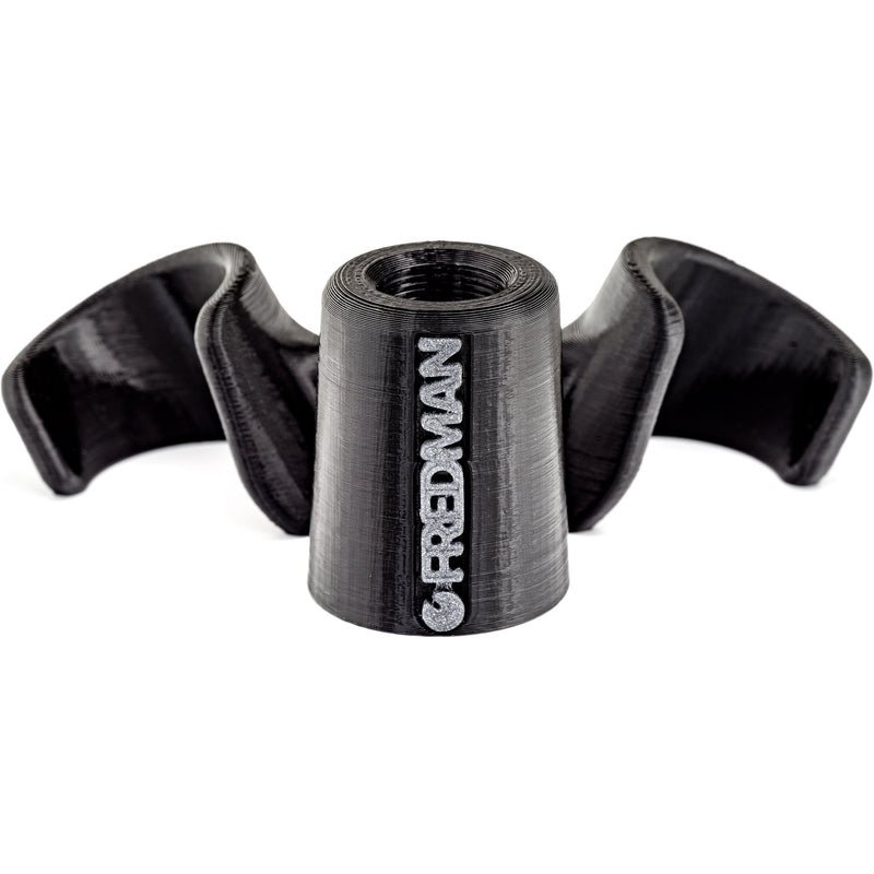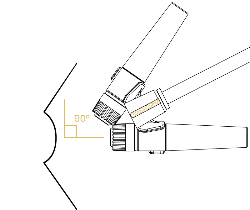 Ja det kanske är en enklare lösning. Nu har jag precis upptäckt den s.ka. "Fredmanmetoden" där man använder två SM57:or med den ena riktad rakt in i 90° på mitten av högtalarkonen, och den andra i en 55° vinkel, där de båda nästan nuddar varandra i toppen. Fredman har dessutom utvecklat en mikrofonhållare för just denna metod. Såhär ser Fredmans dubbelmikrofonhållare ut: Detta är tydligen en ganska populär metod för just tunga, distade gitarrer (metal). Signalen från den vinklade 55°-micken blir lägre i volym så man får dra upp den lite mer än 90°-micken men den får en betydligt "basigare" ton och tillsammans ska de låta riktigt bra. Jag tänker att detta säkert vore en bra lösning för den torra förstärkaren. Och ur plånbokens perspektiv är det givetvis billigare med en till SM57:a än att köpa en ribbon/bandmick, som då dessutom kanske helst skulle vara placerad en bit ifrån högtalaren, vilket givetvis även ökar risken för fasproblem i relation till SM57:an som ska sitta så nära högtalaren som möjligt. Sen behöver jag ju 2 SM57:or till de två våta förstärkarna också, så totalt 4st. Vill jag sen experimentera med att även micka upp rumsljudet i stereo med två andra mikrofoner så kan jag ju alltid ge mig in i det senare. Det bästa vore nog att få dessa 4 SM57:or att jobba bra ihop först. Det fina med SM57:or är ju att de är billiga, väldigt billiga i förhållande till många andra mikrofoner och de är ju i princip industristandard vi det här laget så dessa kan komma väl till användning för mickning av det mesta. De är nog dock inte särskilt bra på att spela in rumsljud i stereo, eller?- 9 svar