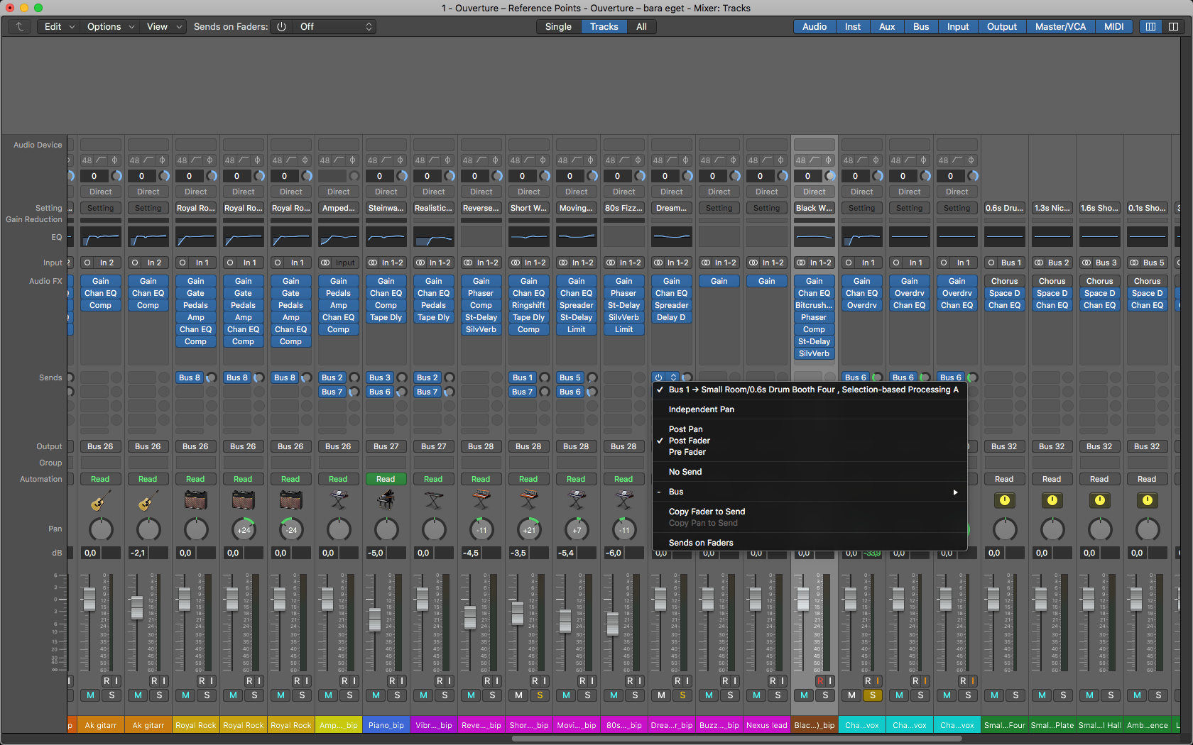 Hehe.. Det är inte som input på ena kanalen, utan när jag klickar på sendknappen (där jag kan välja vilken bus send-kanalen ska skicka till med mera), så dyker menyn upp (se bilden) och där står SBP A med (utöver Reverbet som ska vara där). Hur ändrar jag det som står där? -