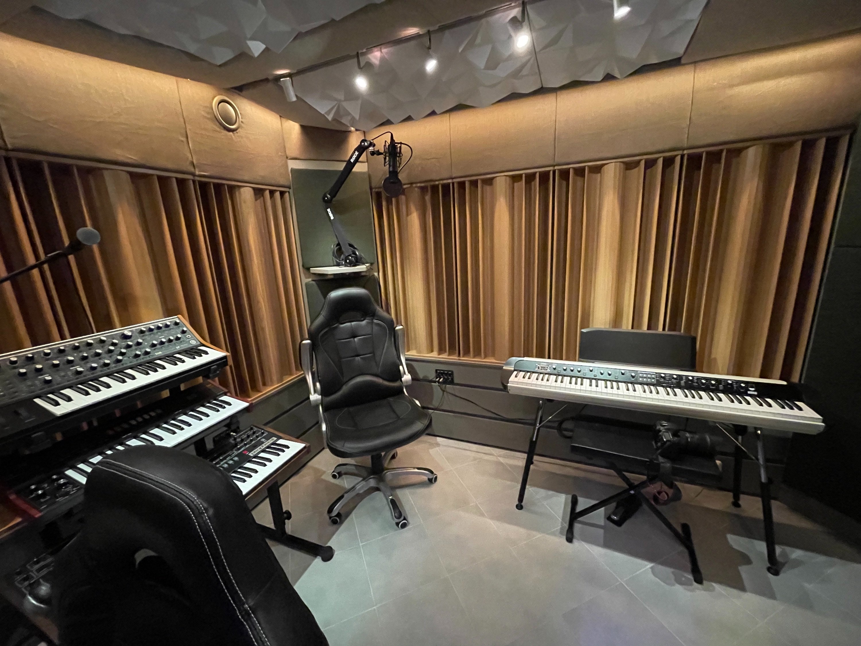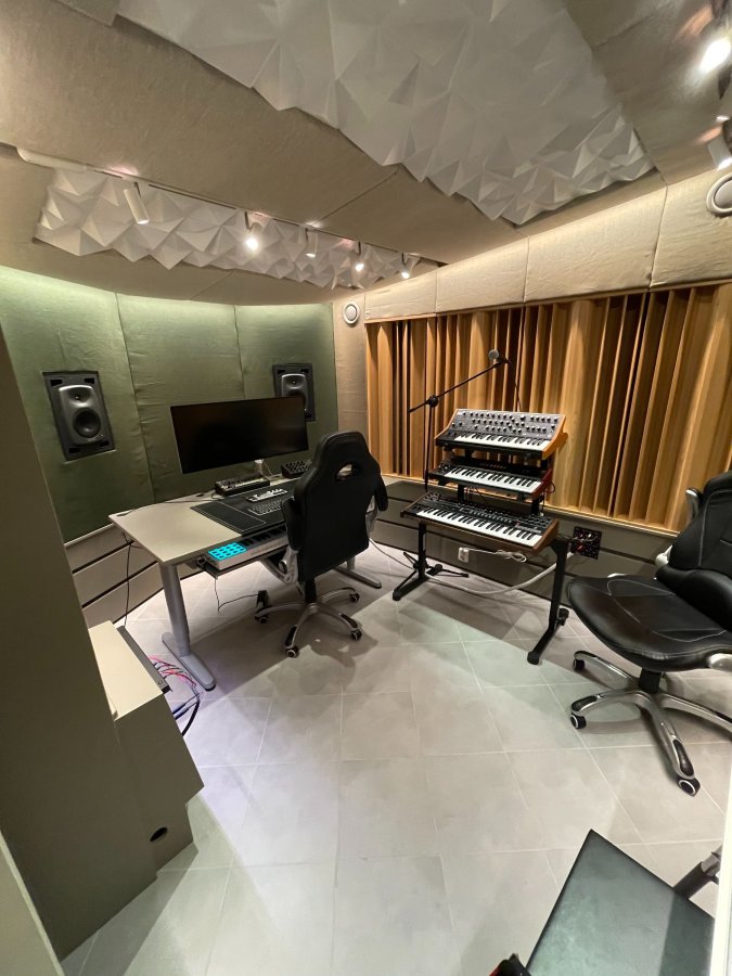 Jaha hörni, bygget blev klart till slut, efter mer än 10 år. Haft så mycket kul här inne att jag inte hunnit med att uppdatera tråden. Tog till slut in en professionell akustiker för att dubbelkolla mitt akustiktänk innan bygget färdigställdes. Det landade i en helt ny lösning och jag gick på den efter mycket om och men. Fyllde på med kommersiella diffusorer och har fem olika sorters isolering i väggarna. Högtalarna är friläggande i väggarna och står på betongrör fristående från väggkonstruktionen. Valde att klä in allt i linnetyg som släpper igenom ljudvågorna in i akustikplattorna. I de två bakre hörnen står två specialbyggda basfällor med fem fack vardera som är fyllda med pianoull. Varje fack har ett ingångsrör som "stämmer" basfällan likt en orgelpipa till den frekvens som skall dämpas, allt enligt uppmätning i rummet. Har fällt in två stageboxar med ljudkablar som löper till patchbay för att kunna växa i studion samt ha flexibilitet att koppla om utan att trassla till det tämligen lilla utrymme. Det är ingen stor studio, men perfekt för små projekt. Väldigt trivsamt och funktionellt för mina behov.